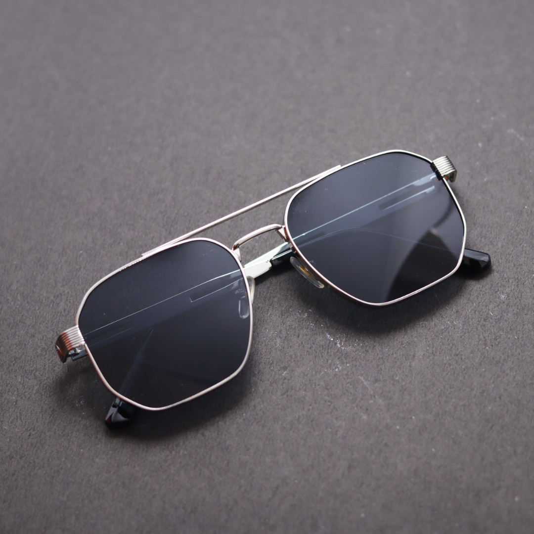 Golden, Silver & Full Black Double Bar Metal Frame Sunglasses For Men